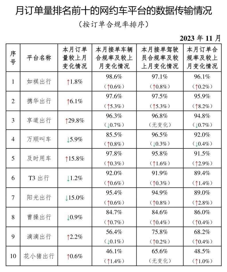 网约车监管信息交互系统发布2023年11月份网约车行业运行基本情况