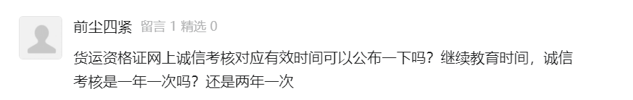 问:货运资格证网上诚信考核对应有效时间可以公布一下吗?继续教育时间、诚信考核是一年一次,还是两年一次?