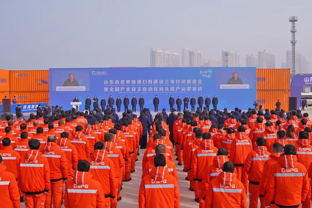 12月27日,山东省世界级港口群建设三年行动推进会暨全国产全自主自动化码头投产运营活动在山东港口青岛港自动化码头举行。