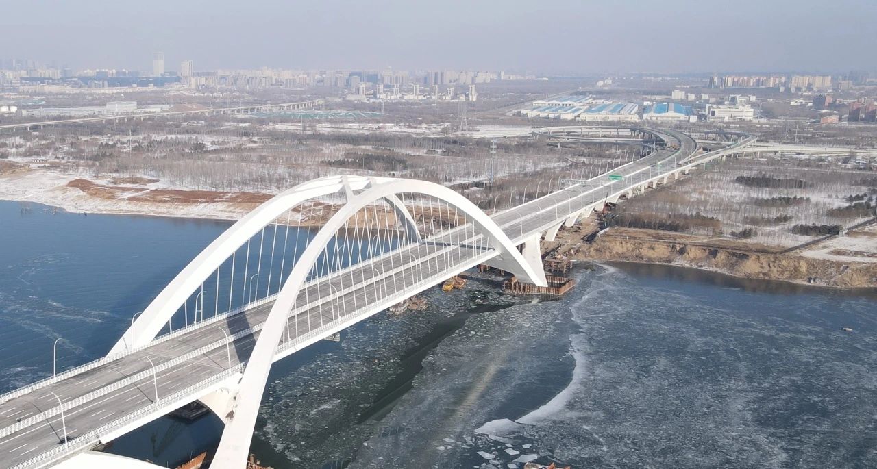 作为京雄高速全线重难点和控制性工程,京雄大桥已于2023年6月17日实现合龙,刷新北京桥梁单跨跨度纪录。桥梁采用飞燕式拱桥结构,拱顶以“中国结”造型的风撑连接,寓意北京与雄安两座城市紧密联系、协同发展。