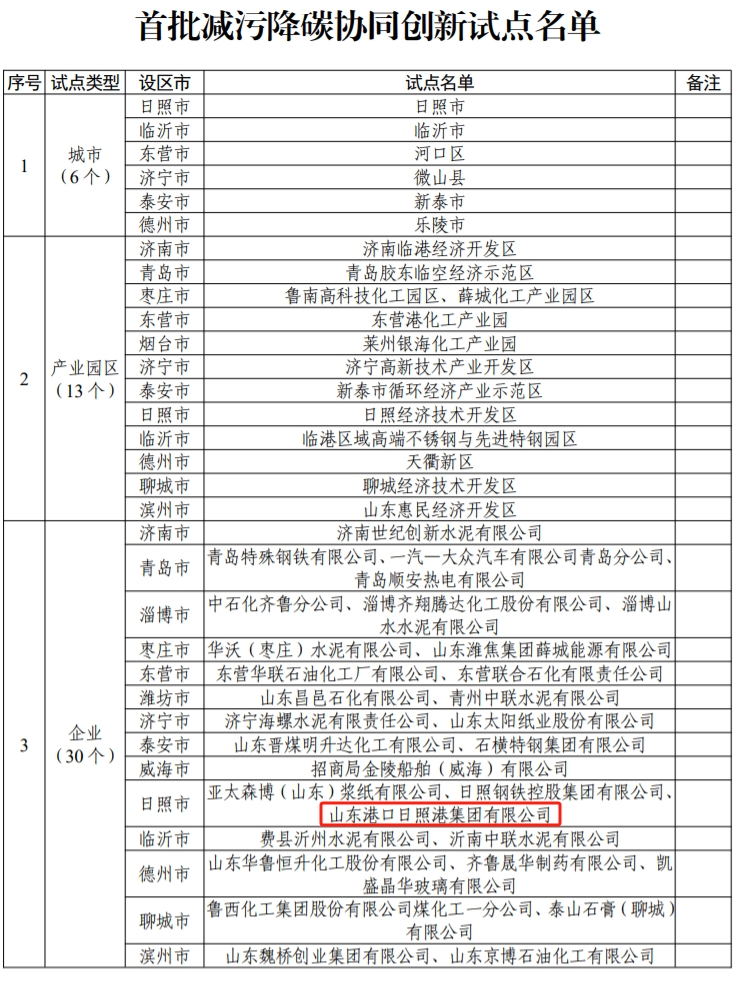 重磅!我会常务理事单位山东日照港集团有限公司入选山东省首批减污降碳协同创新试点