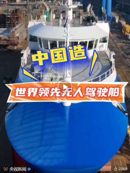 这艘100%我国自主知识产权的无人驾驶船将在今年交付。