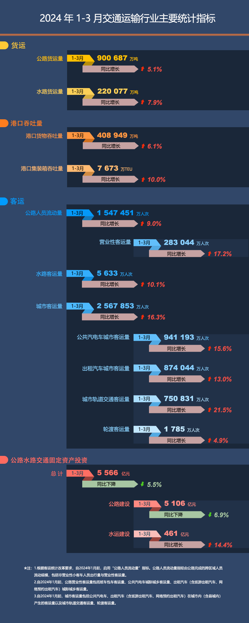 2024年1-3月交通运输行业主要统计指标