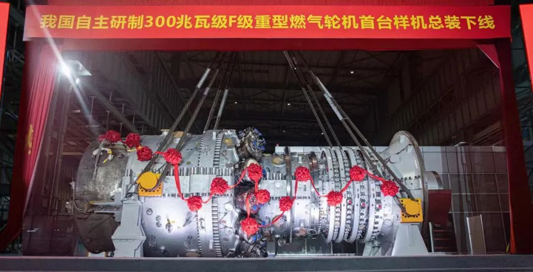 ▲2月28日,我国自主研制的300兆瓦级F级重型燃气轮机首台样机总装下线