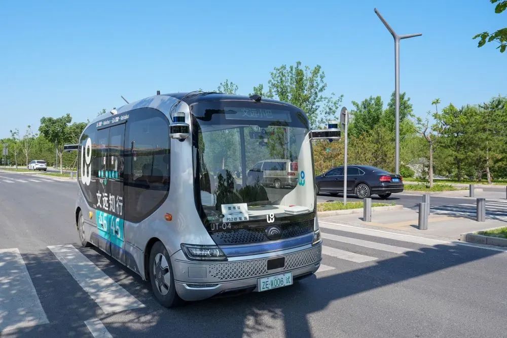 2024年5月21日,在北京城市副中心,一辆无人驾驶小巴在接送乘客。新华社记者 鞠焕宗 摄