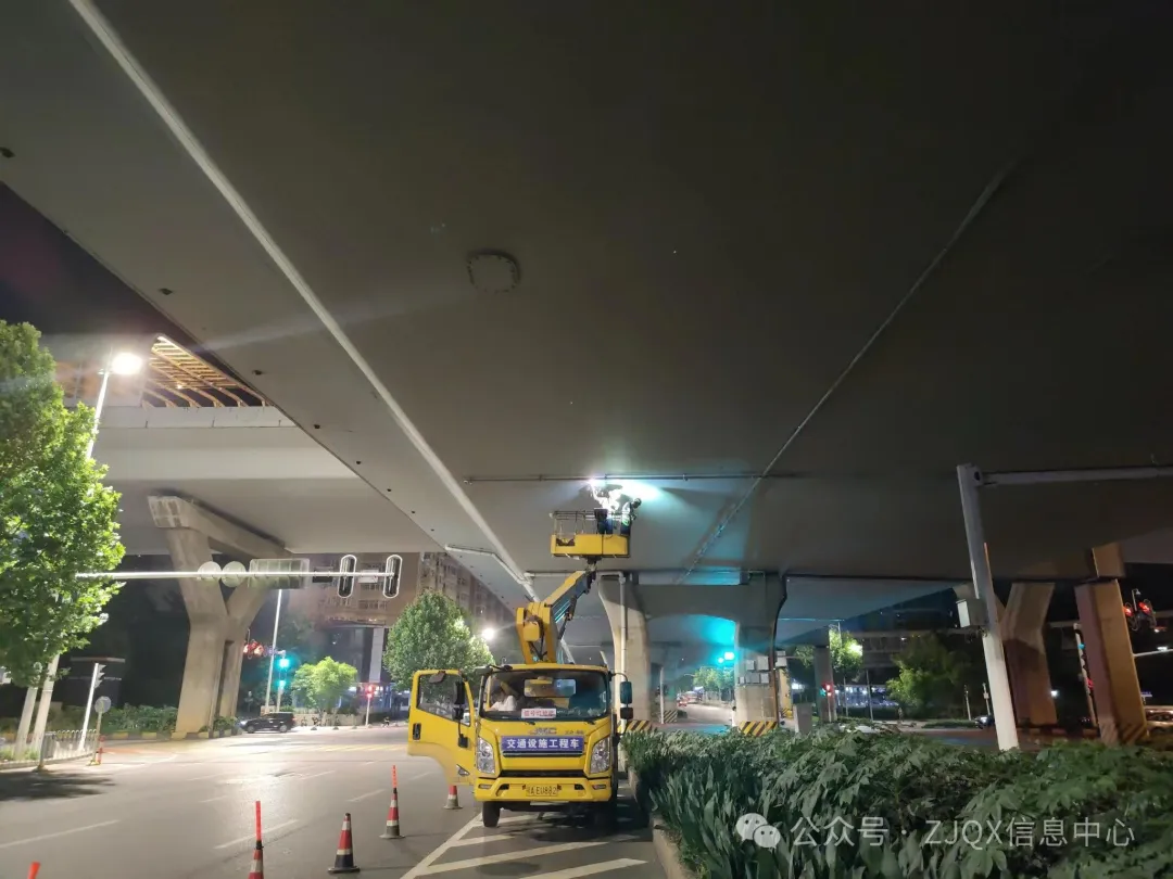 在珞狮路立交桥安装传感器