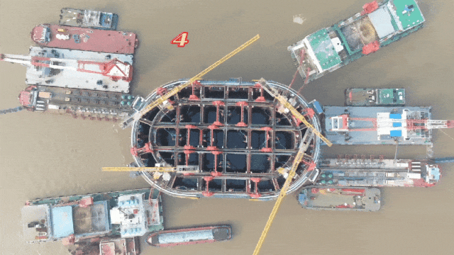 2020年11月28日,天星洲专用航道桥首个钢围堰成功吊装。