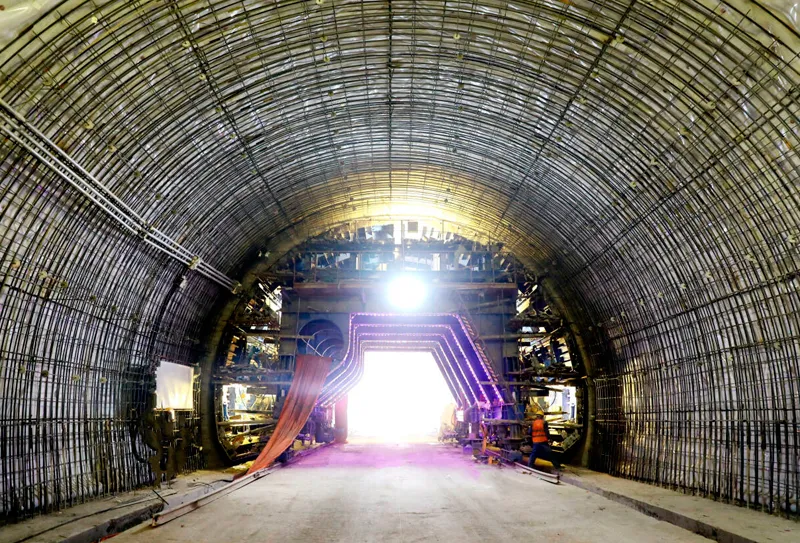 掘进设备在五指峰隧道内施工。李建平摄