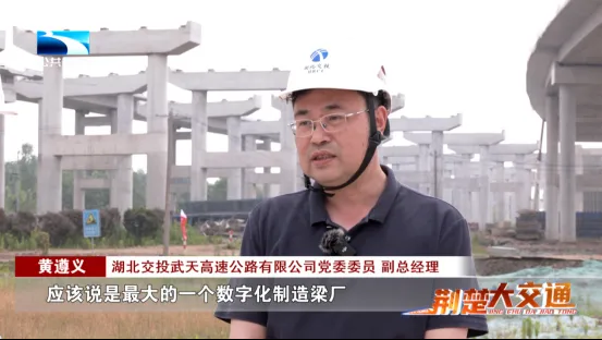 湖北交投武天高速公路有限公司党委委员、副总经理 黄遵义:“我们武天高速的智慧梁厂,在整个湖北省来说,应该说是最大的一个数字化制造梁厂。现在我们的大梁改变了过去的传统工艺,从钢筋制作、混凝土浇筑到撤模、立模、养生,一整套程序都全部实行了数字化管理。一条梁从生产到最后张拉完毕,仅需要三天时间,预计比过去传统的产梁工艺要节约时间十天以上。”