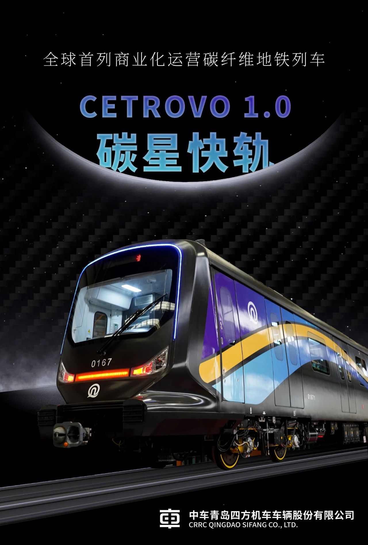6月26日,中车四方股份公司联合青岛地铁集团为青岛地铁1号线研制的碳纤维地铁列车“CETROVO 1.0碳星快轨”在青岛正式发布,这是全球首列用于商业化运营的碳纤维地铁列车。该车较传统地铁车辆减重11%,具有更轻更节能等显著优势,引领地铁列车实现全新绿色升级。