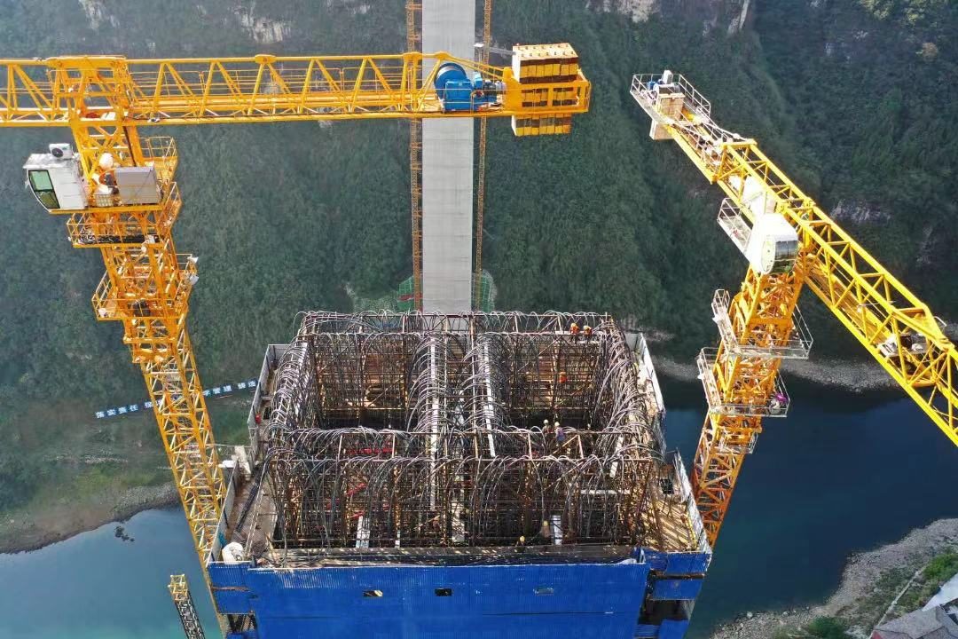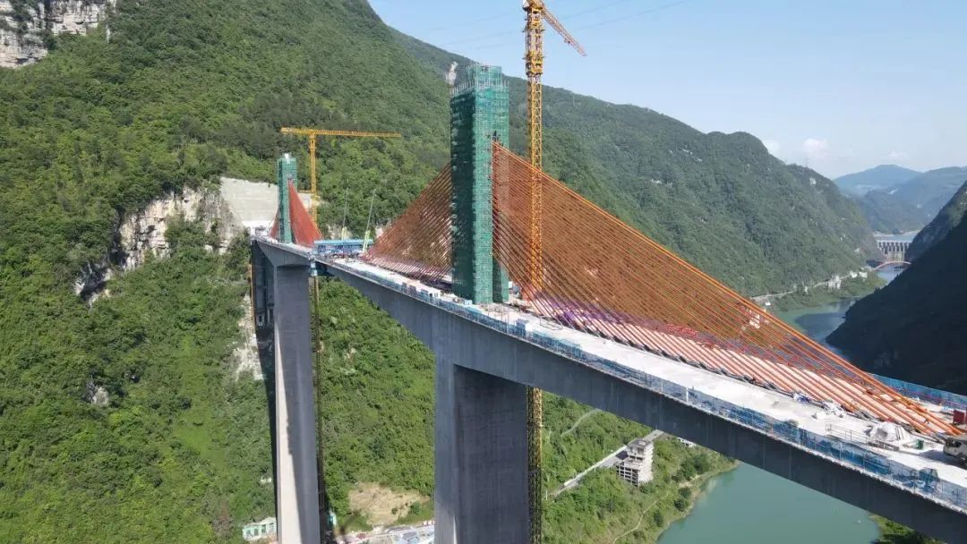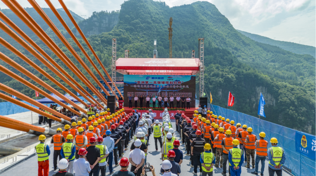 2022年6月29日,渝湘复线高速矮塔斜拉桥亚洲第一高墩墩柱突破100米。