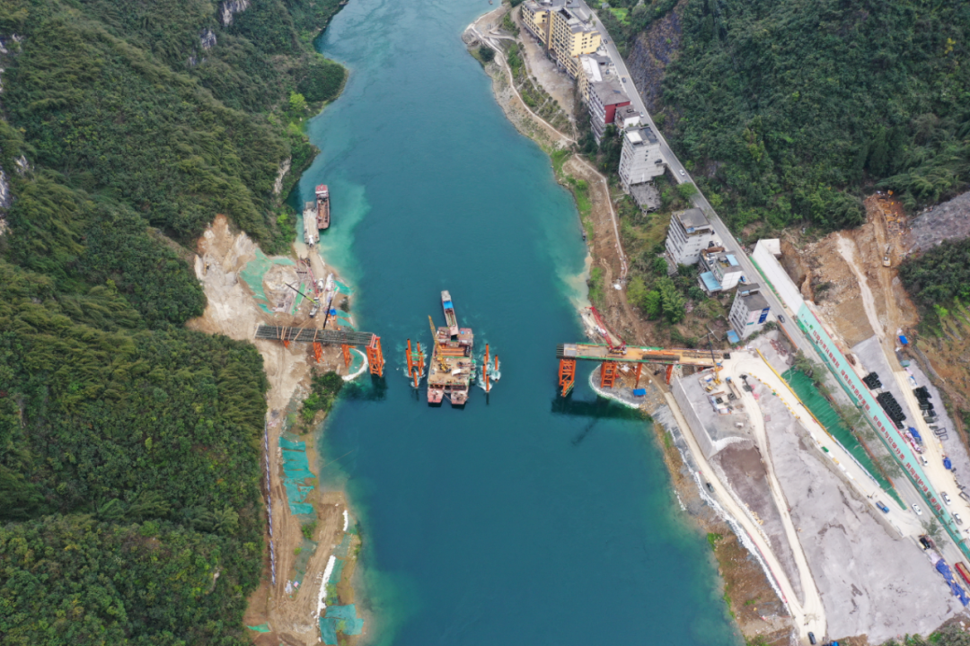 2022年12月5日,磨寨乌江特大桥3号主墩封顶。