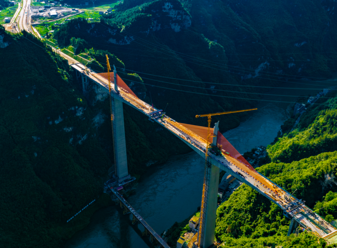 2024年1月3日,磨寨乌江特大桥完成索塔封顶。
