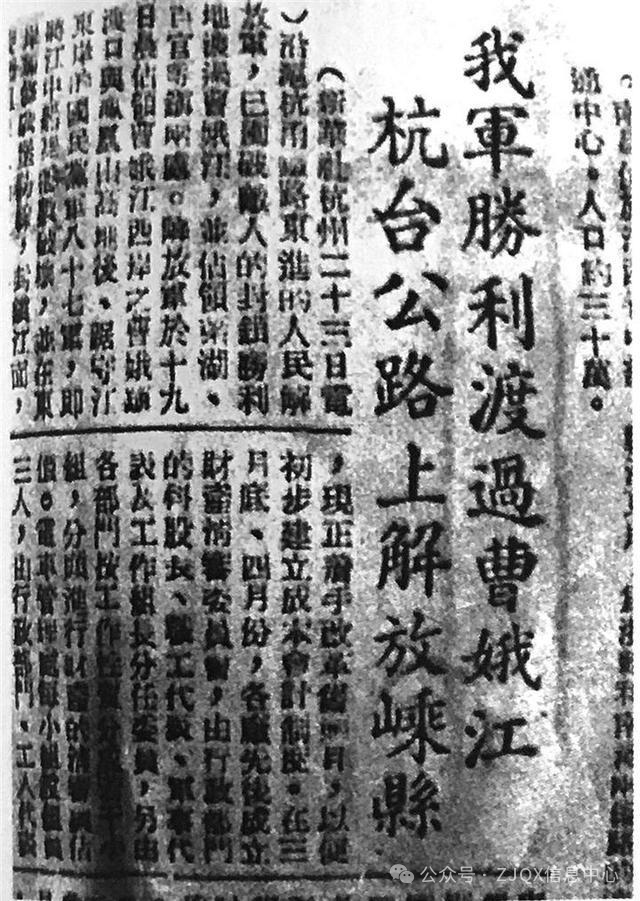 1949年5月24日,《浙江日报》对解放嵊县的报道。
