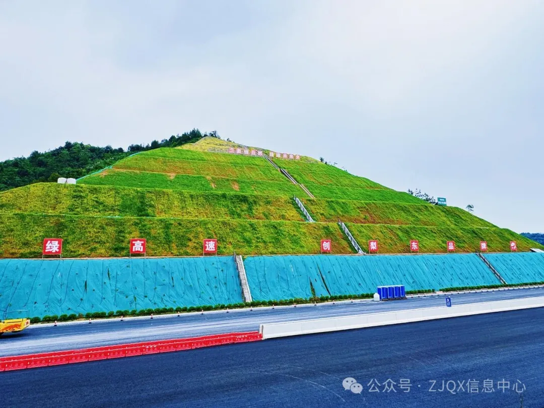 逐绿而行,要“面子”,也要“里子”,只是看到“绿”还不行,还得向“绿”要效益。项目办制定了一系列美绿高速建设的措施及理念,如今成效初显。混凝土尾料处理中心对废弃混凝土进行分离回收,解决混凝土污染问题,节约了宝贵的建筑资源。投入使用近一年,共节约混凝土4000余方,节约用水约3.6万吨。为解决红砂岩质量检测难题,开发了三维层析成像的红砂岩路基施工质量检测技术,能够快速检测红砂岩路基质量,有效缩短建设工期降低施工风险和检测成本,实现增收节支近2000万元。为应对膨胀土、红砂岩边坡、强风化岩质边坡等不利于植被生长的地质状况,引进了蜂巢约束系统护坡技术,通过蜂巢约束系统的固土防护机理与植物根系的锚固作用,将有生命的植物与无生命的蜂巢约束系统有机结合为整体。创新应用了植被生态修复技术,通过重建土壤环境、植被群落和物资循环3个子系统恢复受损边坡生态系统的结构与功能,取得了良好的应用效果。在畈上特大桥,在桥梁下部构造施工完成后,施工单位对桥下进行了整形并播撒了草种,等桥梁上部施工完成后,桥下已经长出了绿油油的一片草地。
