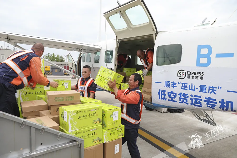 无人机从巫山的脆李果园起飞后,仅需几分钟便能将脆李运送到山下的集散中心。同时,顺丰速运引入1.5吨塞斯纳208B货机,开通巫山到重庆低空脆李航班,该货机在7月17日至7月25日期间投入运营,江北机场设置专用停机位,安排专人、专车保障脆李运输。