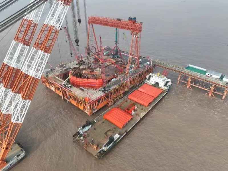 “5号主塔墩承台已经浇筑完成,这标志着西堠门公铁两用大桥主墩正式进入主塔施工阶段。”中铁大桥局甬舟铁路西堠门公铁大桥项目部常务副经理李永旗说。