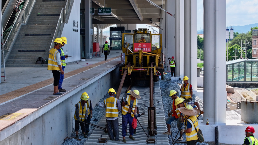 全线轨道铺通后,南深高铁南玉段项目将加速推进无缝焊轨和轨道精调,并开展全线静态验收工作,为联调联试做好准备。截至目前,南深高铁南玉段项目桥梁、隧道、站房、“四电”等主体工程已全部完成。