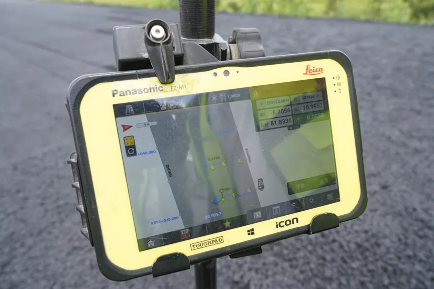 “使用徕卡3D摊铺自动控制系统,整个路面铺设误差实现了毫米精度级别控制,并且实时监控,减少现场人员投入、降低施工安全隐患。工作现场只需2名测量人员负责系统控制及检测,一天可以铺设水稳层约1.3公里,效率较传统工艺相比提高1.5倍。”昌金改扩建项目相关负责人介绍道。