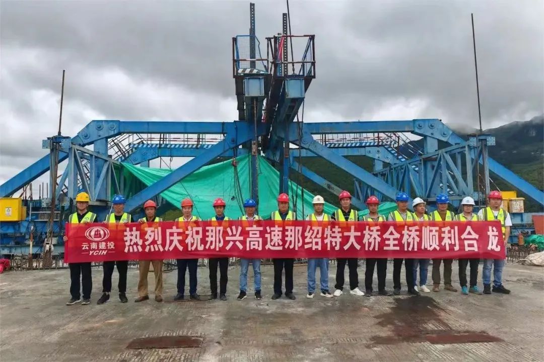 那兴高速建设以来,不断完善管理手段,强化技术创新,严格按照集团“四保一控一树”项目管理要求,以“西畴精神”为指引,为那绍特大桥建设提供全方面要素保障。在合龙浇筑现场,施工人员严守规范施工,经多方人员旁站监督、联合验收,圆满完成那绍特大桥双幅合龙任务目标。