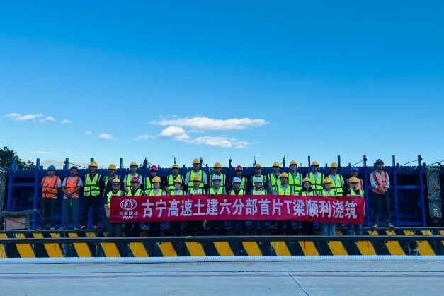 7月31日,古宁高速六分部首片预制T梁浇筑完成,拉开桥梁上部结构施工序幕。