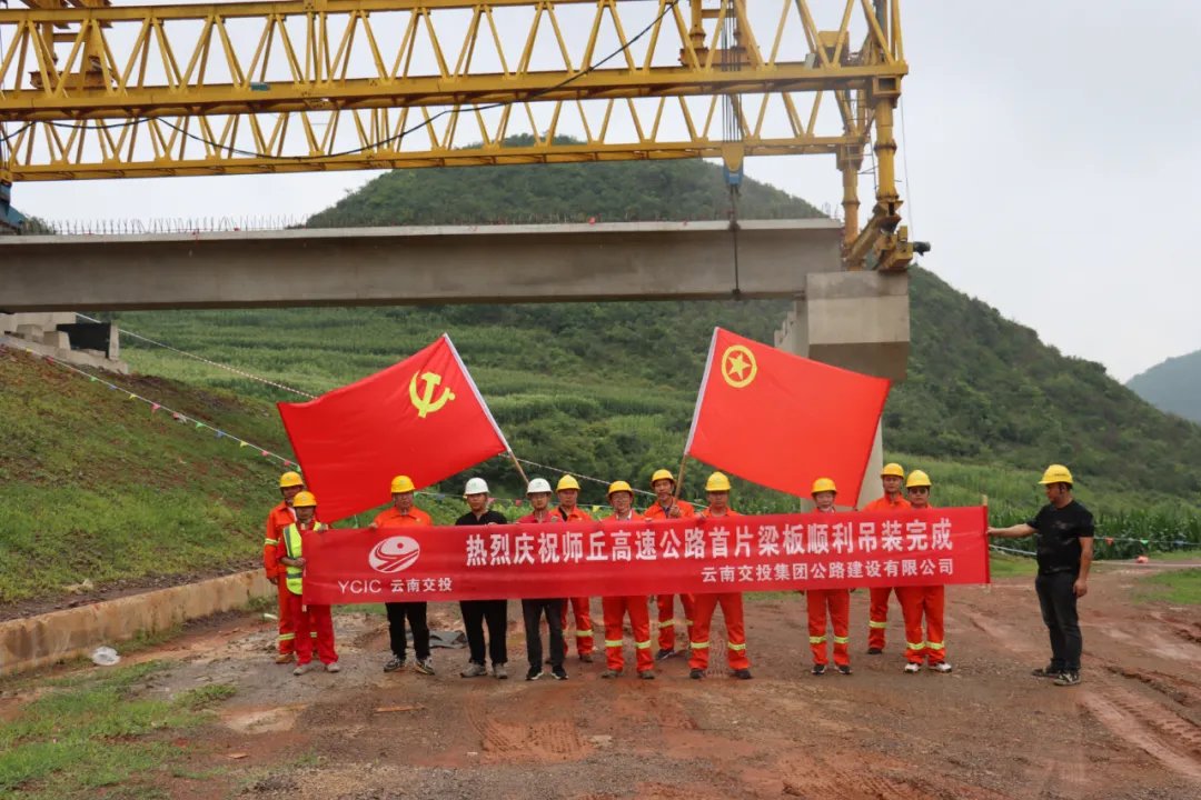 7月28日,由云南交投集团投资建设的师宗至丘北高速公路全线首片梁板顺利吊装完成。