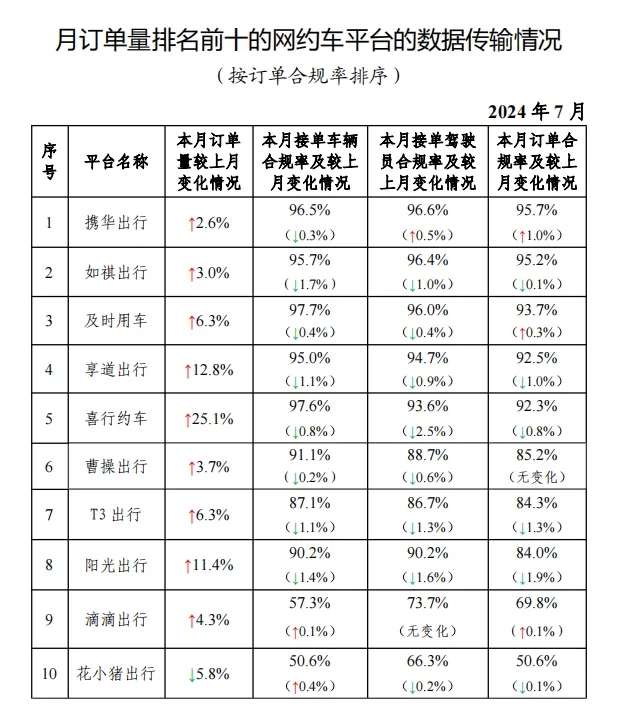 网约车监管信息交互系统发布2024年7月份网约车行业运行基本情况