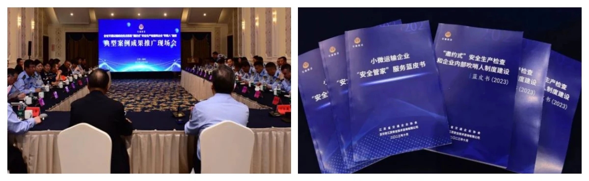 江苏省内各地市及高速执法支队着力打造“邀约式”安全生产检查实施项目,坚持行业监管与便民服务并重,执法检查与邀约帮扶结合,帮助企业及时发现并解决安全生产难点问题,不断提升本质安全水平。交通运输部安全生产调度专报(2023年第6期)对“邀约式”检查的相关做法予以刊发推广。2023年8月7日,司法部调研座谈会上该项目作为典型做法进行会议交流。2023年10月25日,在泰州市召开“邀约式”安全生产检查和企业“吹哨人”制度典型案例成果推广现场会,发布《“邀约式”安全生产检查和企业内部吹哨人制度建设蓝皮书》。