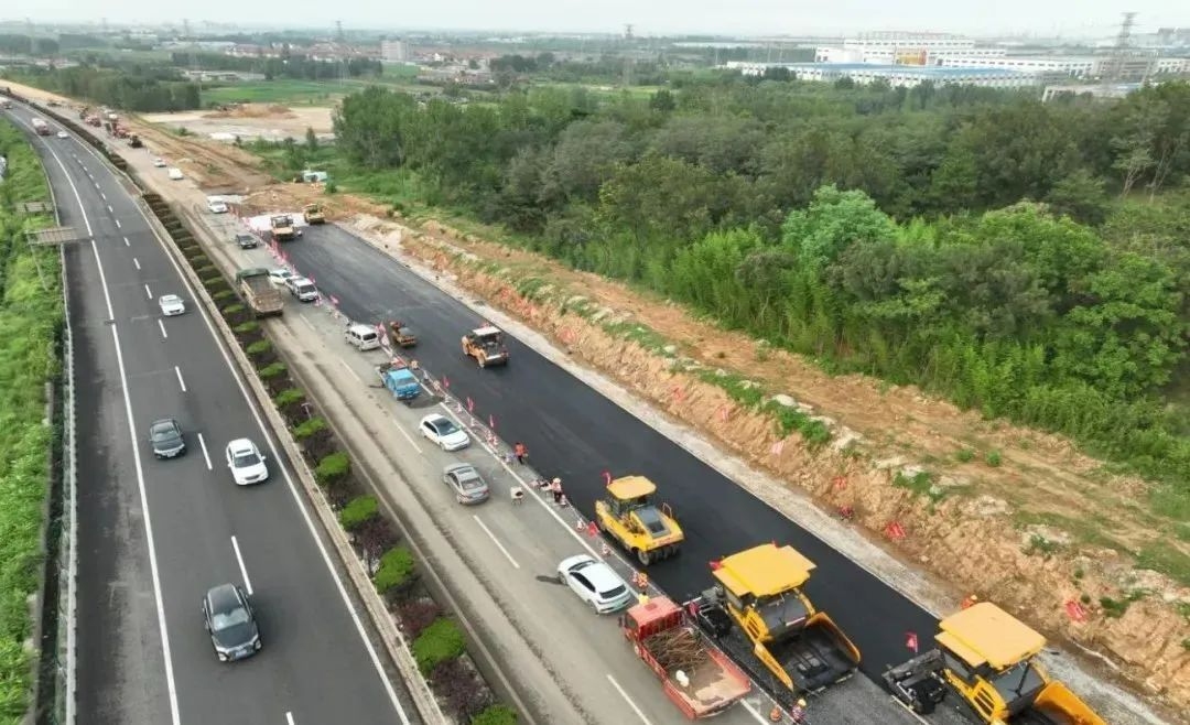 近日,沈海高速公路改扩建工程二标段施工现场,沥青摊铺机、压路机等施工机械马力全开,有条不紊地进行施工作业。