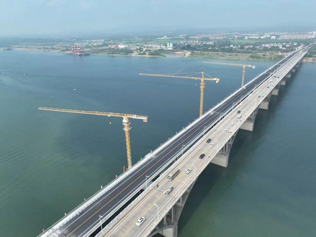 新干赣江大桥连接东西两岸,是新干县城乡的交通要道,也是吉安市“十四五”重点交通运输重大工程项目。该项目总投资4.88亿元,全长约2.13公里,其中跨赣江桥长1.15公里,引桥长0.98公里,采用双向六车道设计。左幅桥梁通车后,项目还将分别实施拆除老桥施工和新建右幅桥梁,预计2027年1月份全面建成通车。