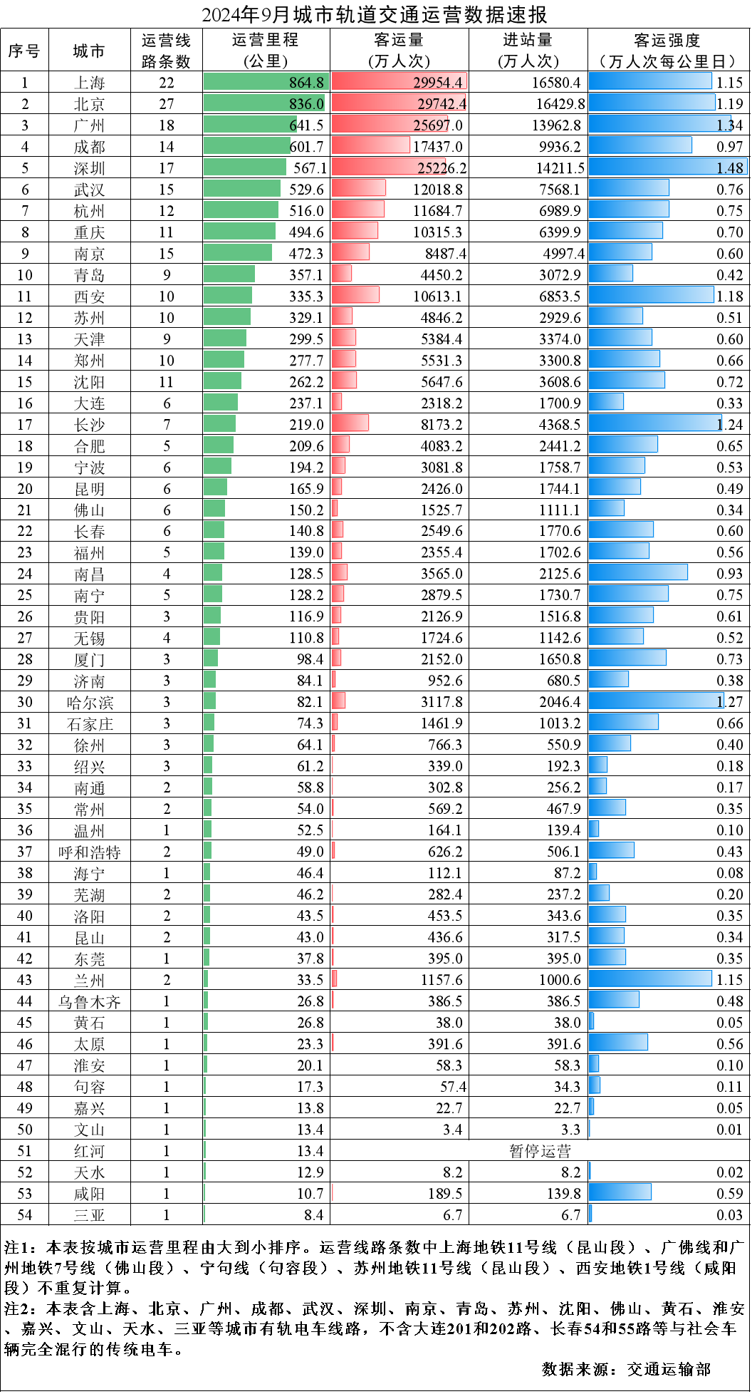 2024年9月城市轨道交通运营数据速报