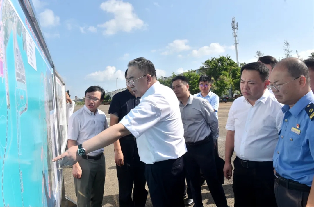 在海口市二线口岸货车集中查验场,付绪银一行观看了视频和沙盘,听取了“二线口岸”项目建设情况及通关流程汇报;在粤海铁路南港,中铁二院湛海高铁项目组、海南铁路公司分别汇报湛海高铁和琼州海峡高峰期运输服务保障能力提升情况;在新海港和秀英港,付绪银深入一线生产泊位,详细了解琼州海峡高峰期运输服务保障措施和港航设施台风“摩羯”灾后重建恢复工作情况。