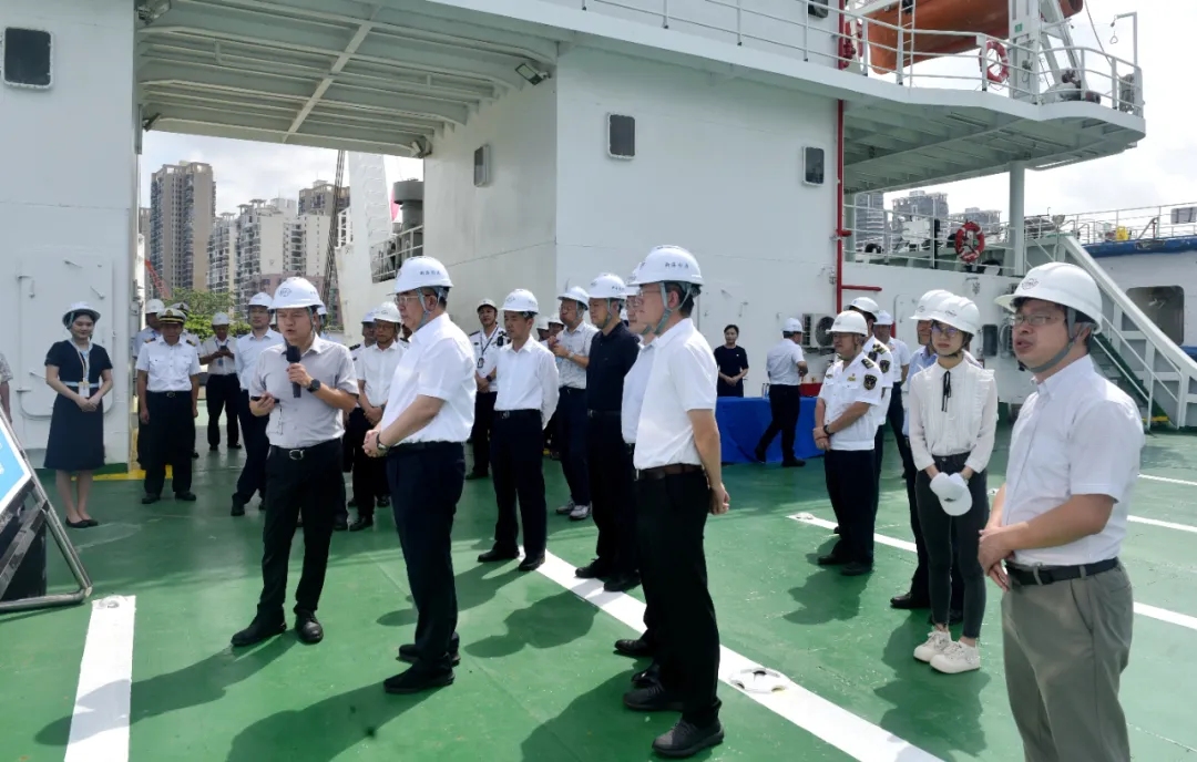 调研期间召开了专题会,分别与海南、广东、广西交通、海事等部门和中远海运等有关港航企业进行了座谈。付绪银听取琼州海峡客滚运输高峰期服务保障能力提升、“一线一策”安全监管情况汇报。会上,海南省、广东省、广西壮族自治区交通运输厅,海口市政府依次汇报《提升琼州海峡客滚运输高峰期服务保障能力专项行动方案》落实情况;珠江航务管理局,海南、广东、广西海事局分别汇报了《提升琼州海峡客滚运输高峰期服务保障能力专项行动方案》落实、琼州海峡客滚运输“一线一策”安全监管和服务保障情况;中远海运集团、海南铁路公司、广东省港航集团发布汇报了《提升琼州海峡客滚运输高峰期服务保障能力专项行动方案》落实情况及需要交通运输部协调解决的事项。