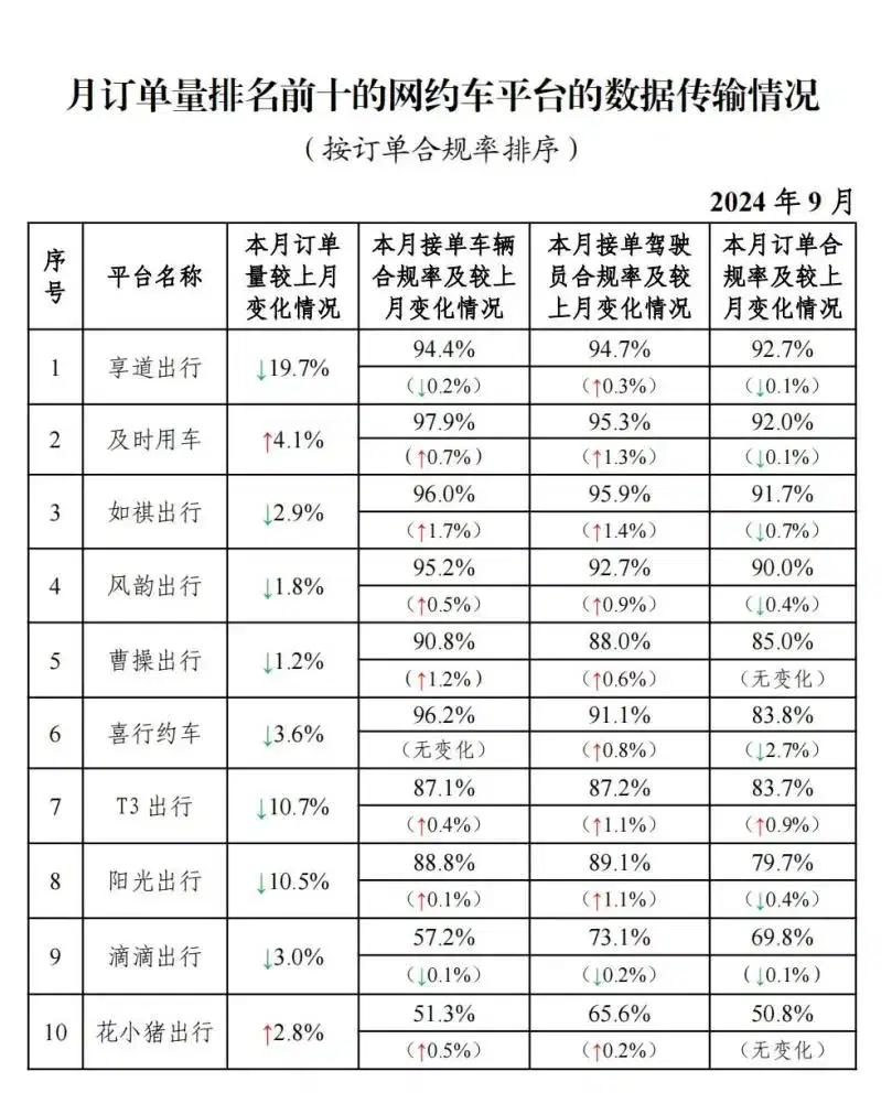 网约车监管信息交互系统发布2024年9月份网约车行业运行基本情况