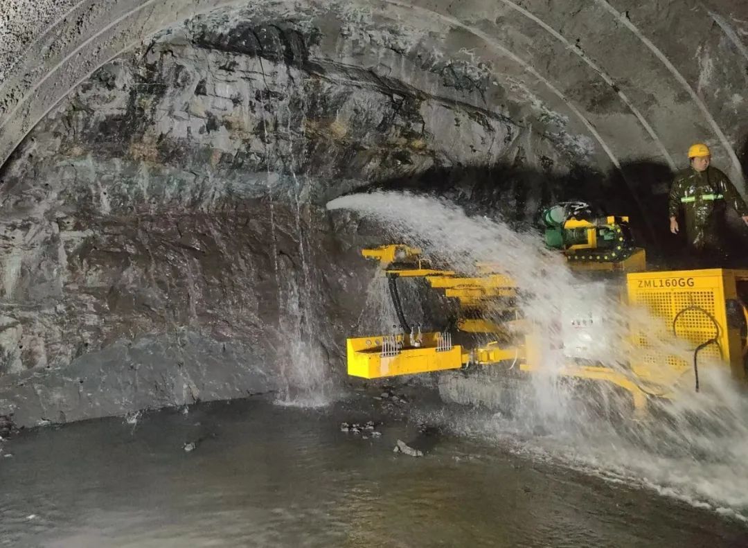五福隧道处于最为复杂的煤矿采空区、老窑水等不良地质段,地质条件复杂,存在突泥、突水等危害。针对这一难题,万开达基层项目围绕“物探先行、钻探验证、钎探保证”方针要求,制定防突水突泥专项施工方案、应急处置预案并邀请专家进行会审,严格执行预防探测措施,有效探测出多段富水段落并及时处理,避免危害发生。