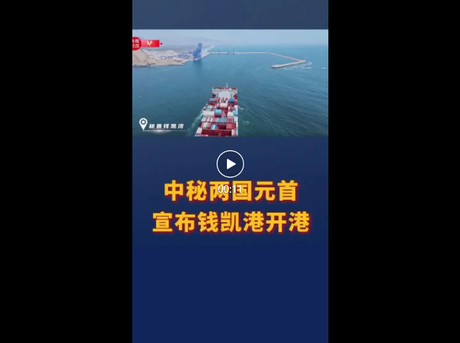 钱凯港位于秘鲁首都利马以北80公里,是中秘共建“一带一路”重点项目。开港后,中秘间单程海运时间将缩短至23天,节约20%以上的物流成本,每年将为秘鲁创造逾8000个直接就业机会。