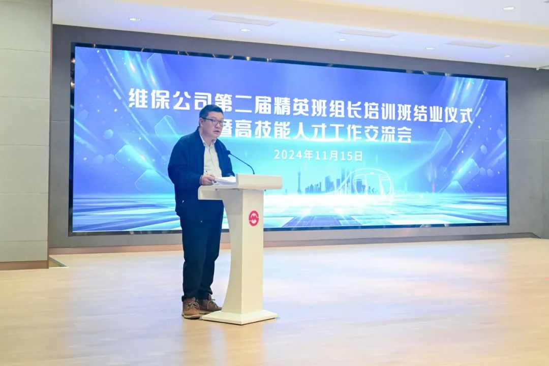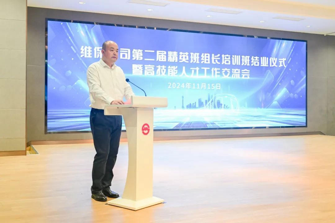 近日,我会会员单位上海地铁维护保障有限公司第二届精英班组长培训班结业仪式暨高技能人才工作交流会在梅陇基地多功能厅圆满举行。集团公司人力资源总监、人力资源部部长吴晓红,集团公司工会副主席屠慧雯,南京铁道职业技术学院科研处、产教融合处处长金旭东,维保公司及各分公司党委书记、工会主席、各合资公司党总支书记、工会主席;维保公司人力资源部、各分公司及合资公司人力资源部负责人,以及各单位精英班组长培训班学员、第三届维保工匠、维保工作室带头人参加会议。