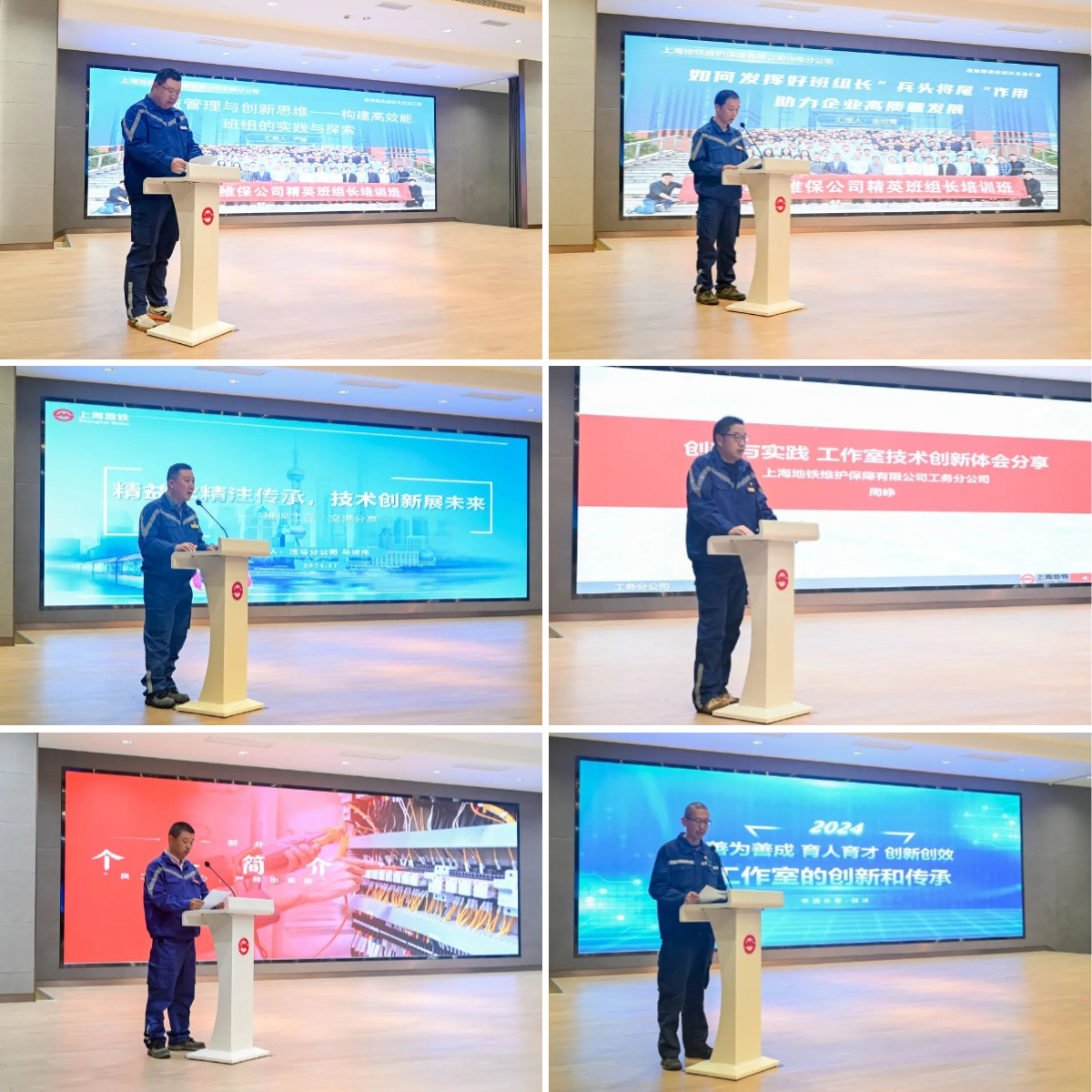 交流环节,精英班组长代表、维保工匠及工作室代表围绕《班组建设》《匠心培育》《创新引领》等三个方面分别作了成果交流汇报。