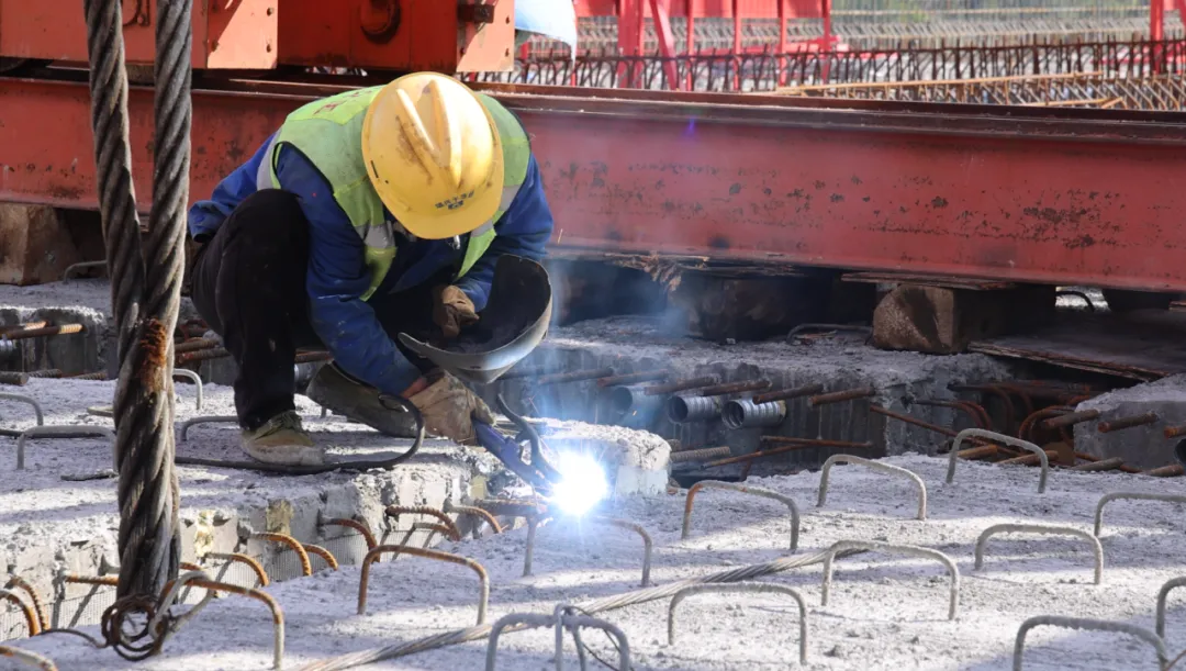 中交二航局科工公司项目团队高标准履约,将“一次成优”作为工作开展的度量尺。为确保拱肋结构的安全稳定和整体线形美观流畅,建设者充分考虑上下游高差因素,精确计算拱肋现场安装预拱度,多角度控制调整,重稳求准,以最优焊接、固定技术确保对接匹配无偏差。在工程进度推进方面,详细审核优化施工图纸,倒排工期,定期组织技术培训和安全教育,强化安全质量管控。同时,充分利用班前喊话和班后会复盘总结,让沟通更通畅更有效,问题困难解决周期进一步缩短。