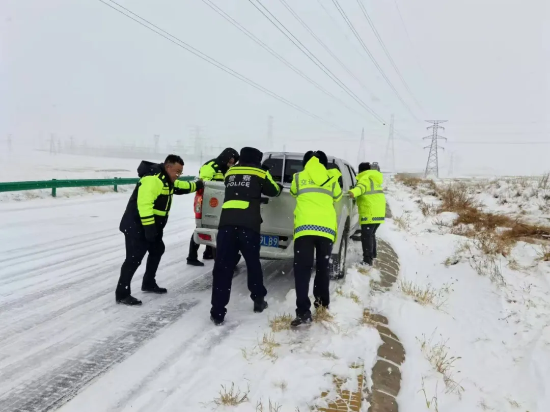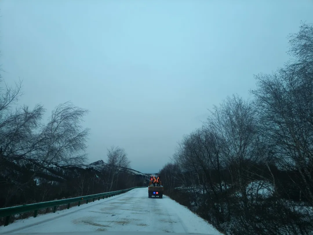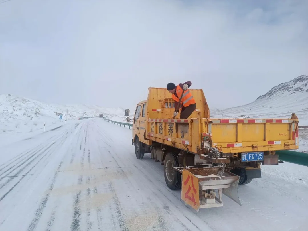 自治区交通运输综合行政执法总队七支队合理调配执法力量,联勤联动,配合养护部门开展清雪除冰、救援等工作。乌日吉 提供