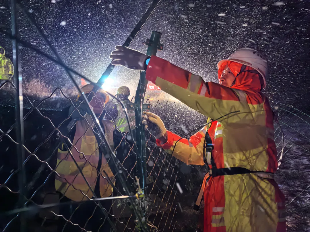11月24日以来,锡林郭勒盟地区迎来今冬首场强降雪天气。内蒙古交通集团蒙通养护锡林郭勒分公司在做好道路除雪抢通的同时,紧急处理加固损坏隔离栅。白晓蒙 摄