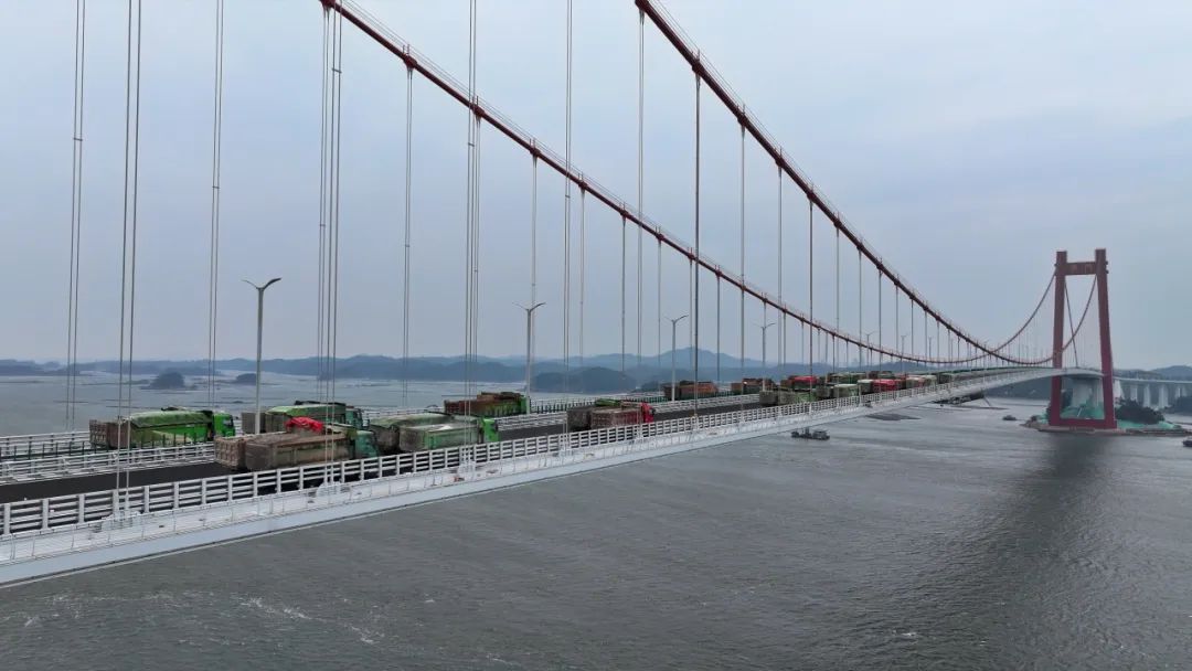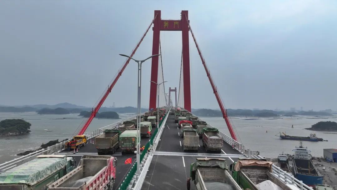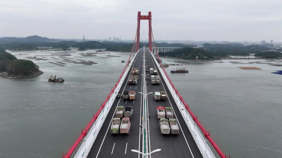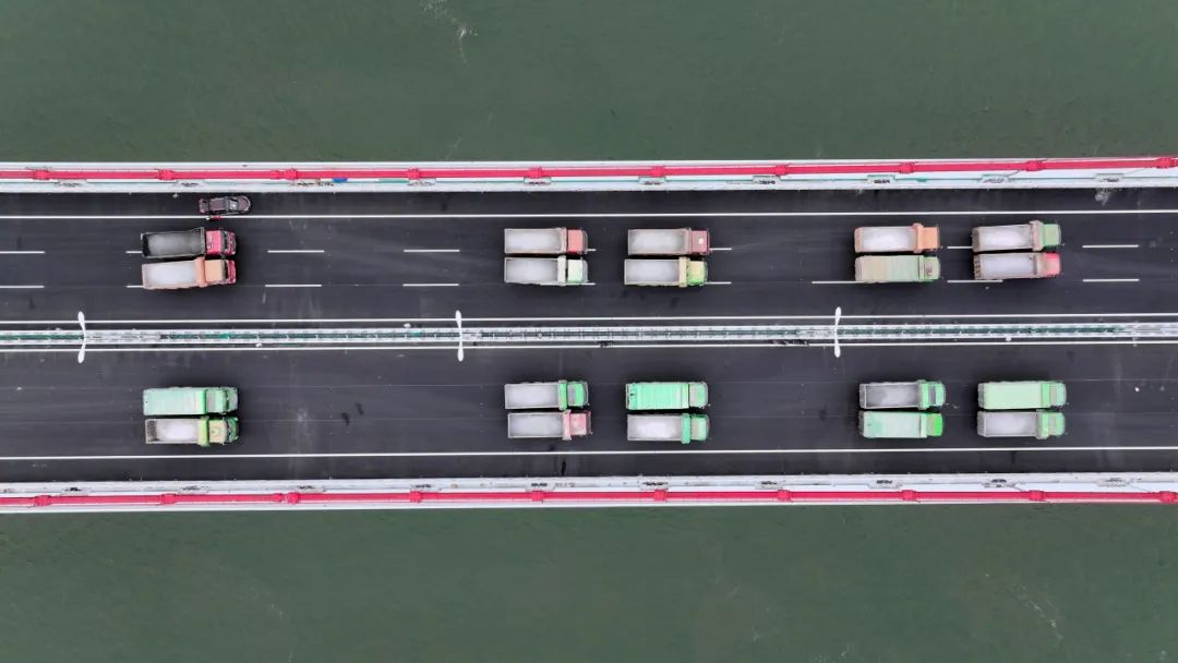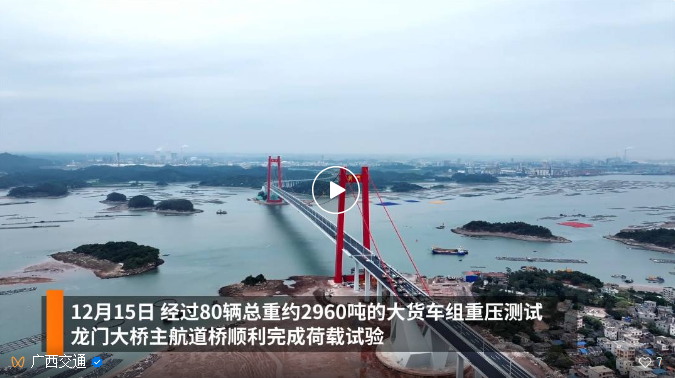 12月15日,经过80辆总重约2960吨的大货车组重压测试,龙门大桥主航道桥顺利完成荷载试验。至此,龙门大桥桥梁工程顺利通过“深度体检”,向建成通车迈出关键一步。