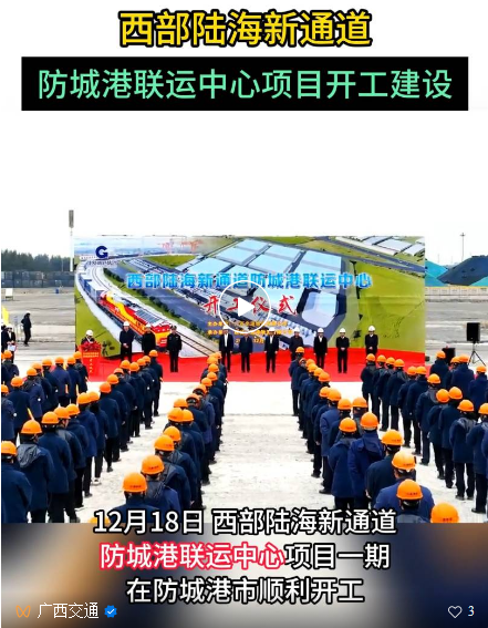 广西交通,赞312月18日,西部陆海新通道防城港联运中心项目一期在防城港市顺利开工,将打造成为具有多式联运、物流供应链金融、保税、交割仓、面向东盟的国际现代物流园,对完善西部陆海新通道的物流网络,促进区域内外的互联互通具有重要意义,有力助推“一区两地一园一通道”高质量建设。