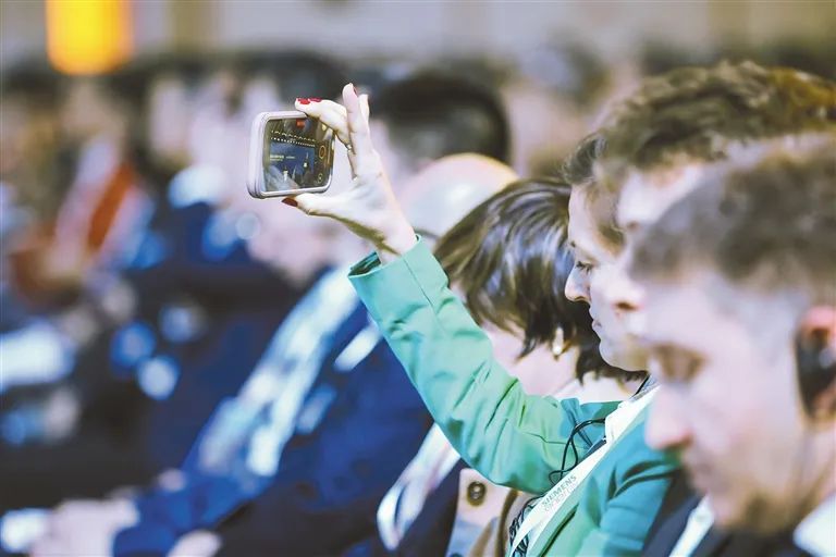 在全球绿色航运大会现场,嘉宾在仔细听讲。主办方供图