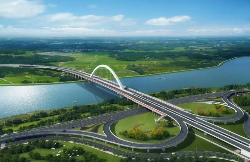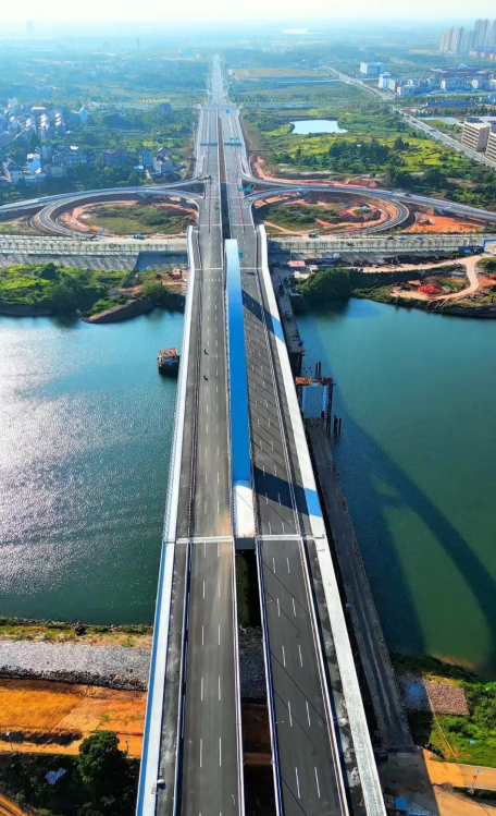 余信贵大道月湖特大桥工程位于鹰潭市月湖区、信江新区境内,属省重点工程。全线起于月湖区土桥村附近,沿线上跨信江河,与童家联圩防洪堤、滨江路立体交叉,终点止于信江新区蟠龙大道与鹰东大道交叉口处,全长约2.8公里。该工程沿线设月湖特大桥1 座,全长1031米,主桥桥面宽47m;道路长约1.8公里,标准段路基宽60m。道路等级按照城市快速路标准设计,设计速度60~80km/h,双向6车道布置。该工程于2022年4月开工,目前已完成所有主体工程建设任务,较计划工期提前4个月。
