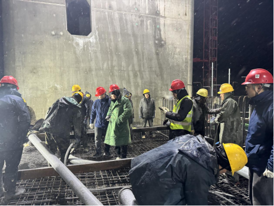 张龙飞、熊飞翔、黄宇、陈万山、张子龙等,全程值守现场,手脚冻得麻木,最多喝点保温杯热水。但是,没有一个逃兵,他们“捂热”每一方混凝土,每每坚持施工一二十小时。