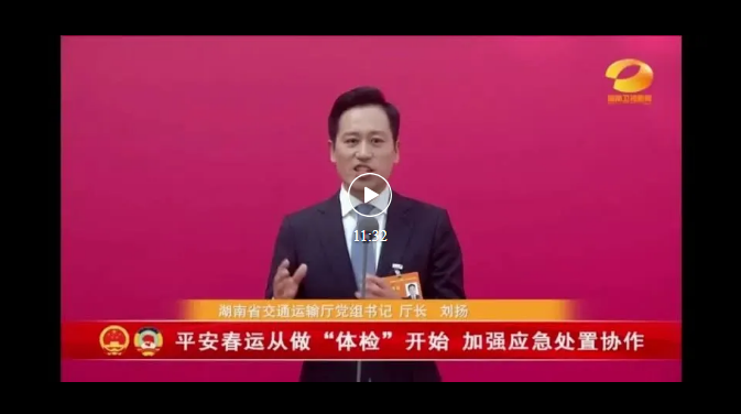 1月14日,在湖南省十四届人大三次会议首场“厅长通道”上,湖南省交通运输厅厅长刘扬介绍了今年春运的新亮点、新举措,以及湖南省交通运输厅围绕推进降低全社会物流成本专项行动,构建便捷高效的综合交通物流网络方向即将开展的工作。
