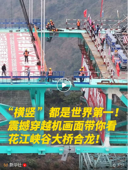 随着最后一段重约215吨的钢桁梁精准吊装至指定位置,在建世界第一高桥——花江峡谷大桥于17日成功合龙,为今年通车运营打下坚实基础。