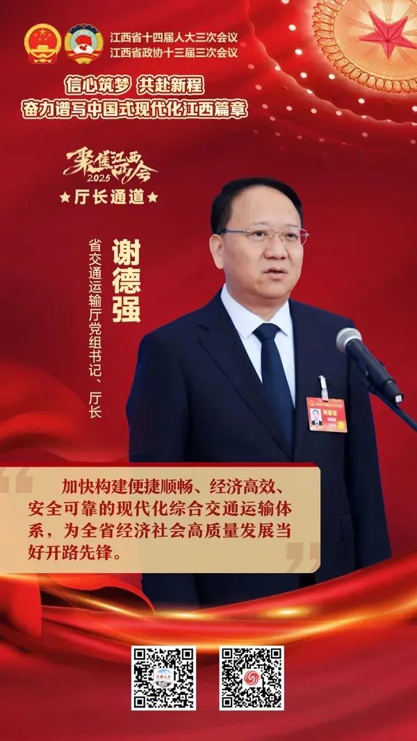 江西省交通运输厅党组书记、厅长谢德强出席省十四届人大三次会议“厅长通道”集中采访活动