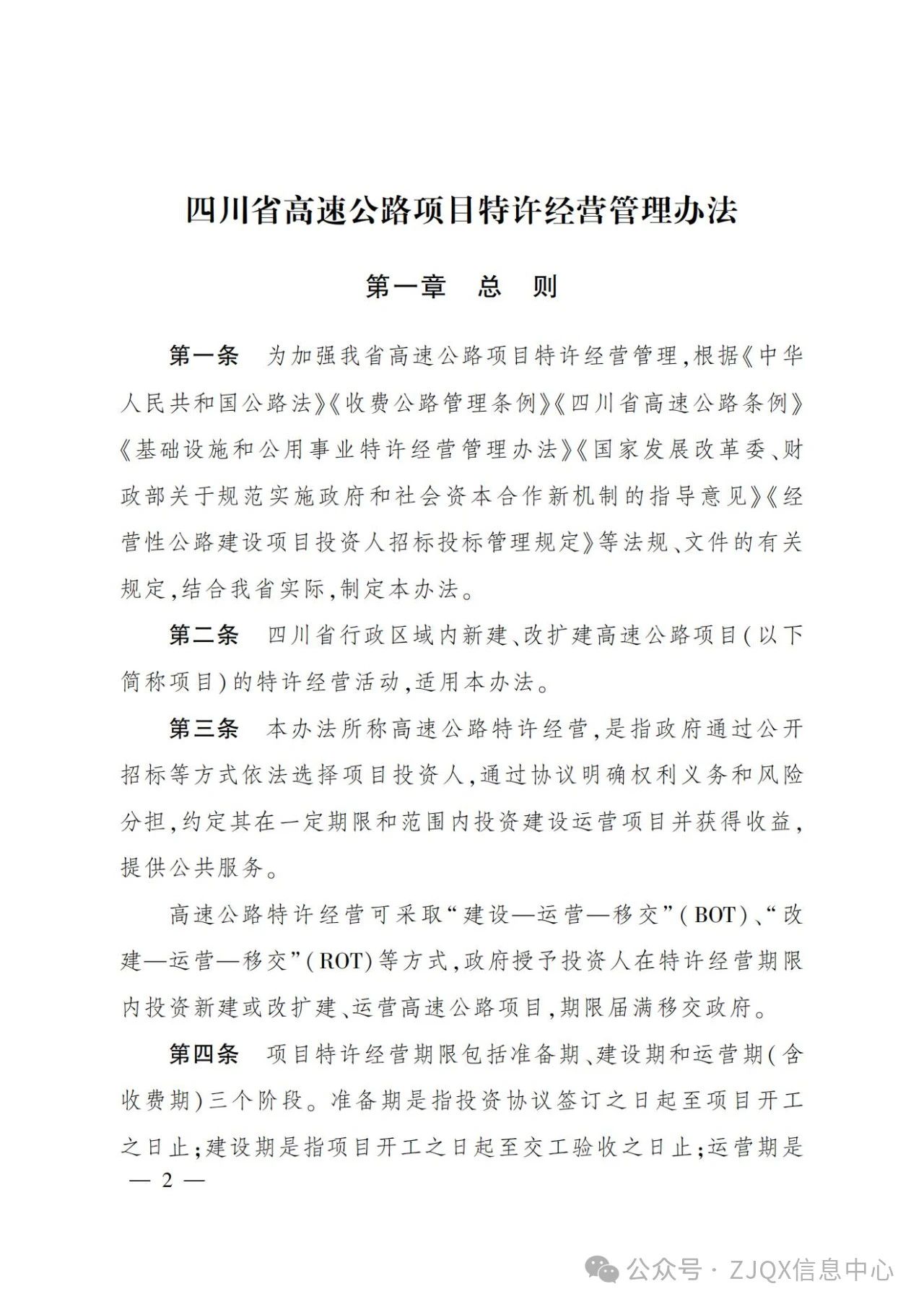 近日,四川省印发《四川省高速公路项目特许经营管理办法》(以下简称《办法》),进一步完善省级层面高速公路项目特许经营管理制度。该《办法》以《四川省高速公路“建设—运营—移交”项目管理办法》等规定为基础,主要从符合现行法律法规、紧扣特许经营模式、明确各方职责、规范项目全过程管理、落实民营企业参与要求等五个方面进行完善,共8章64条。